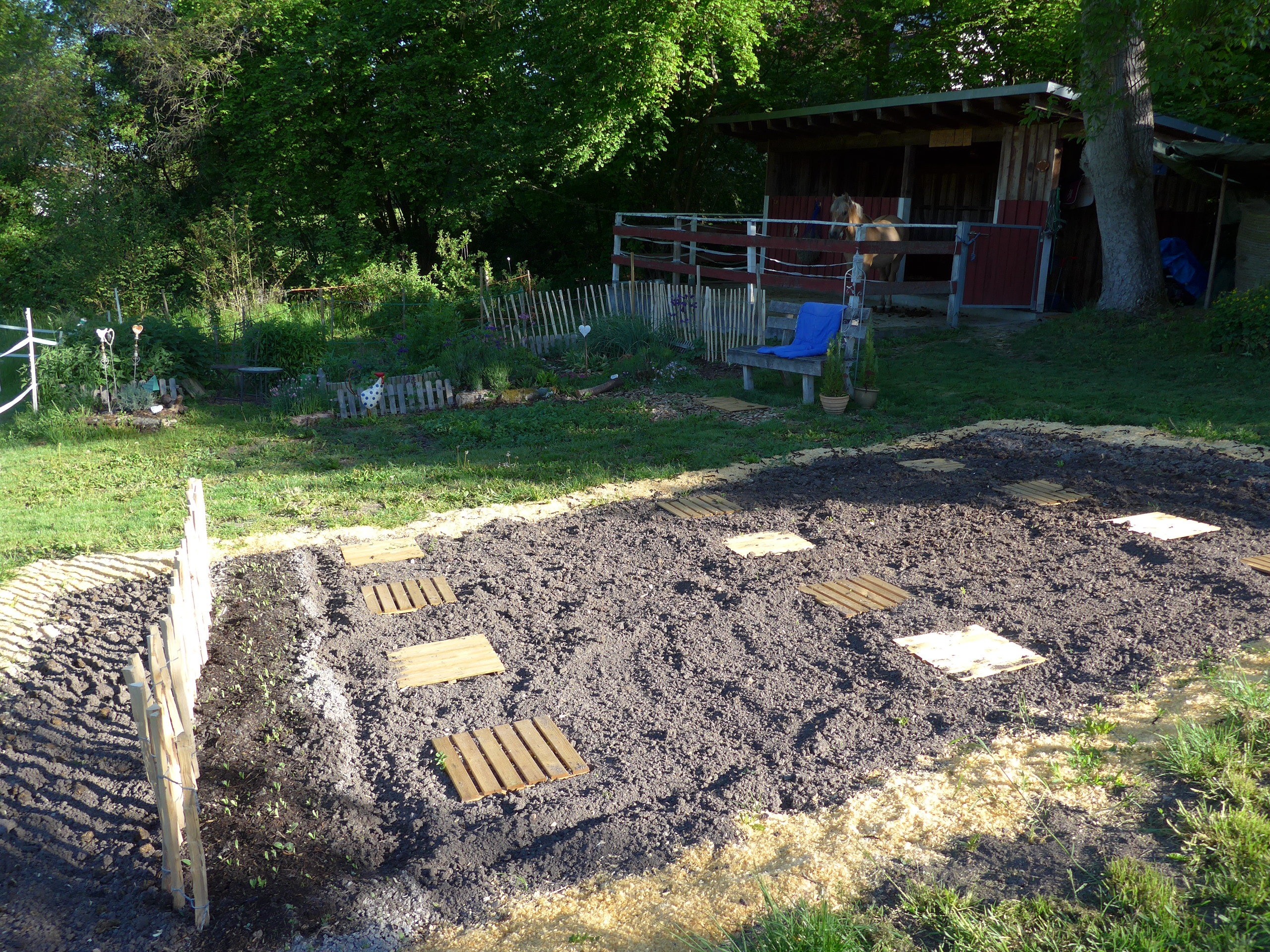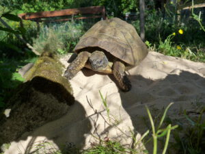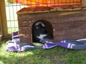 Juli 2025: Eine sehr traurige Kirschengeschichte: Meine zwei Meerschweinchen haben ihren kleineren Freistall immer unter dem Kirschenbaum stehen, denn dort ist es schön schattig und es wächst dort saftiges Gras (weil ich dort hin und wieder gieße).