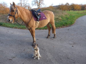 Mila, Levi und ich haben einen schönen Ausritt gemacht und Levi bekam ein besonders schmackhaftes Müsli.