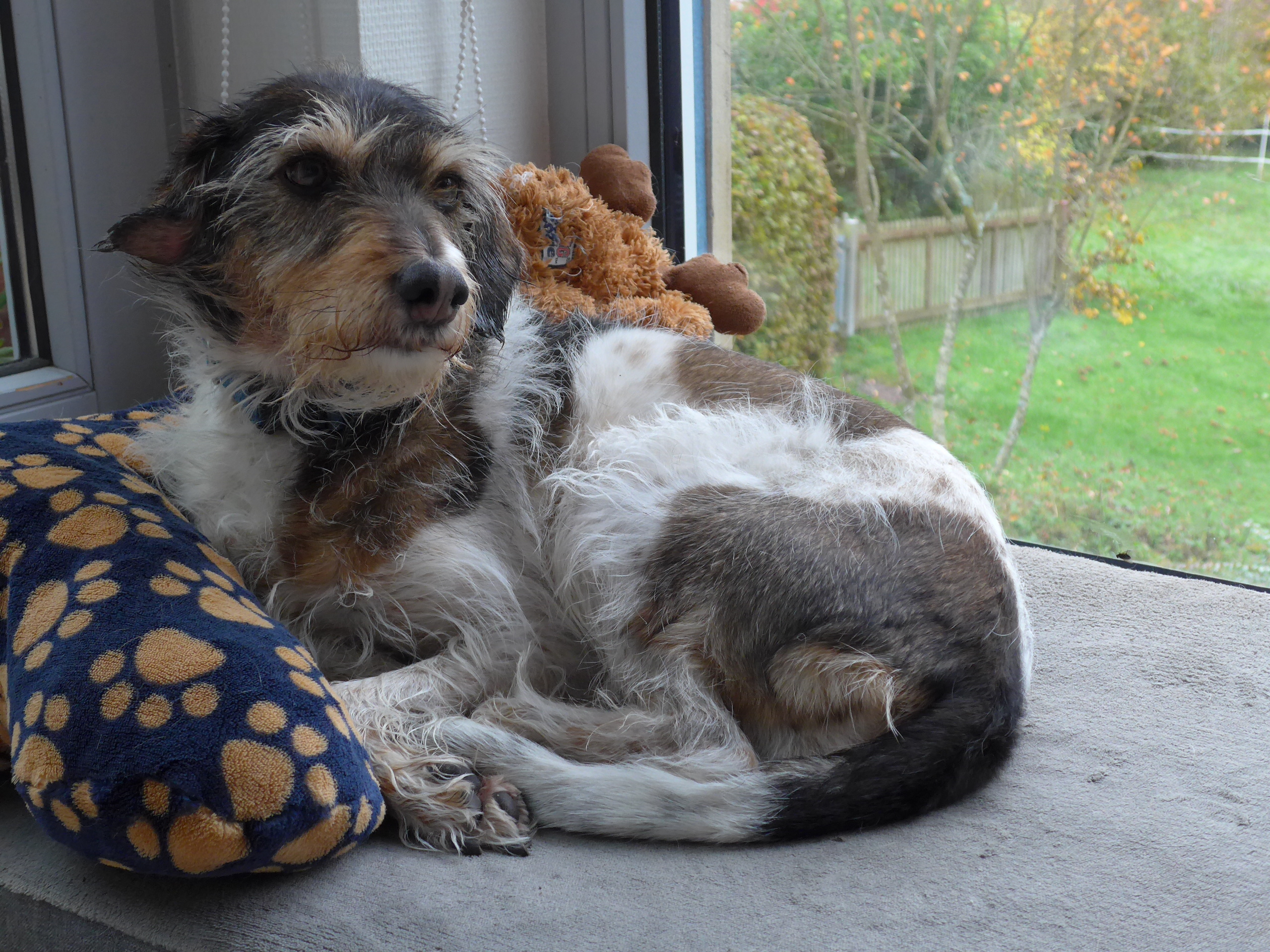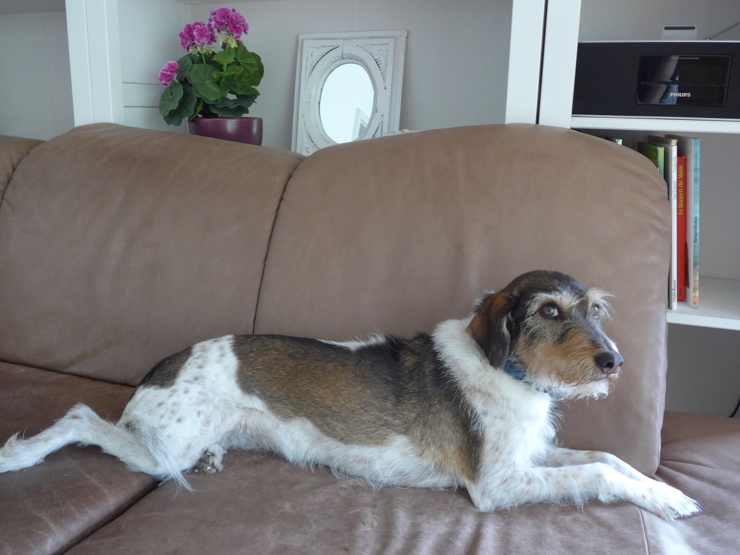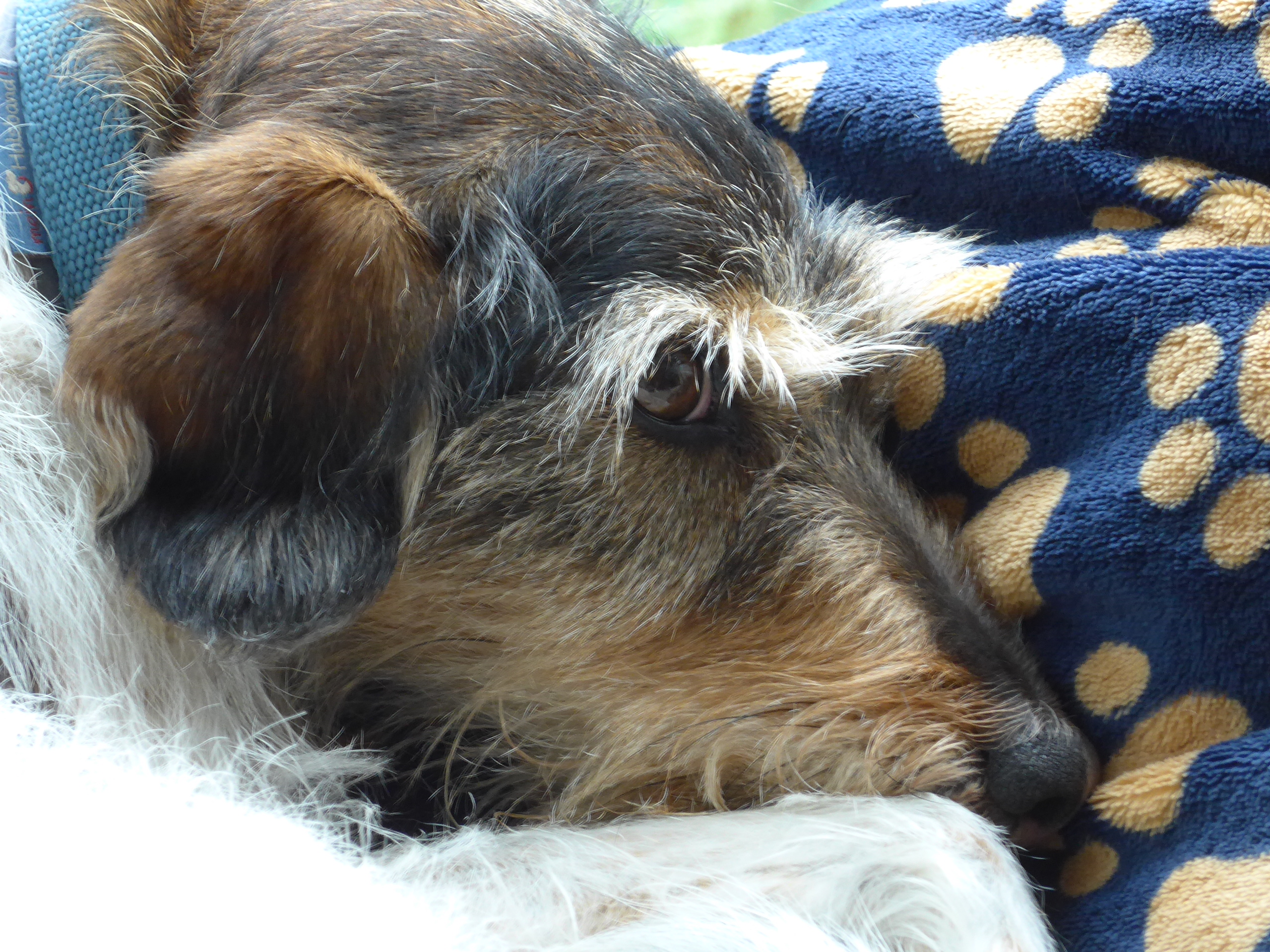 Ein müder Levi! Für die Zahnbehandlung musste Levi sediert werden. Hier schläft er die „Kurznarkose“ aus. Die Zähne sind jetzt wieder top 🙂