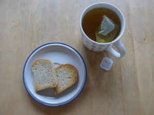 Ich holte Rat und ein Pulver beim Tierarzt. Letztlich können wir nicht viel machen außer Frida per Spritze ins Maul häufig Wasser und hin und wieder Brei (mit diesem Pulver) zu geben. Genau das tun wir nun.