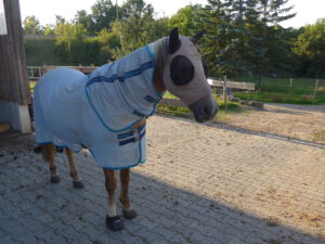 Irritiert bin ich darüber, dass Levi nun doch wieder so rätselhafte offene Stellen im Fell hat. Er wurde vor Wochen vorsorglich gegen Hautpilz geimpft. Somit ist er gerade in einem guten Immunstatus und dürfte gar keinen Pilz bekommen. Sind es vielleicht doch Bisse? Ein anderes Pferd hat aber auch zwei solcher „Stellen“…