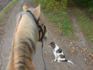 Ansonsten ist Mila fit und fröhlich und läuft nach wie vor weite Strecken am Pferd, am Fahrrad oder neben uns Spaziergängern mit.