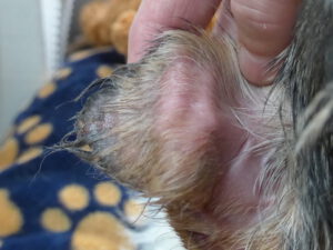 Hilfe!! Mila hat kleine entzündete Stellen am Ohrrand.